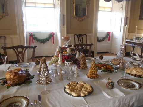 I think few of those foodstuffs are real (just the oranges in pic #2, and maybe the nuts). I did see some gorgeous real-food displays in a couple of places (Fairfax House in York and the awesome Dennis Severs museum in London), but sadly photography wasn’t allowed in either one of those houses. Not that it made much of a difference, those pyramids of fruit and all those cakes & pies looked every bit as real as the real things. Amazing what coloured silicone can do 😀 .