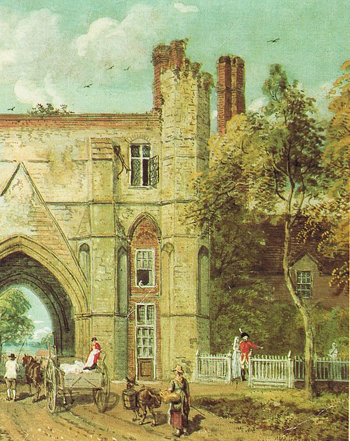 Paul Sandby’s painting of Reading Abbey Gateway gives us a glimpse of the brick building that housed the Abbey School, a boarding school for young ladies, established around 1755. In Jane Austen’s time it was run by a headmistress known as Madame La Tournelle, a name she might have chosen to impress the parents and raise the prestige of the school. In fact, she spoke no French and her real name was Sarah Hackitt.